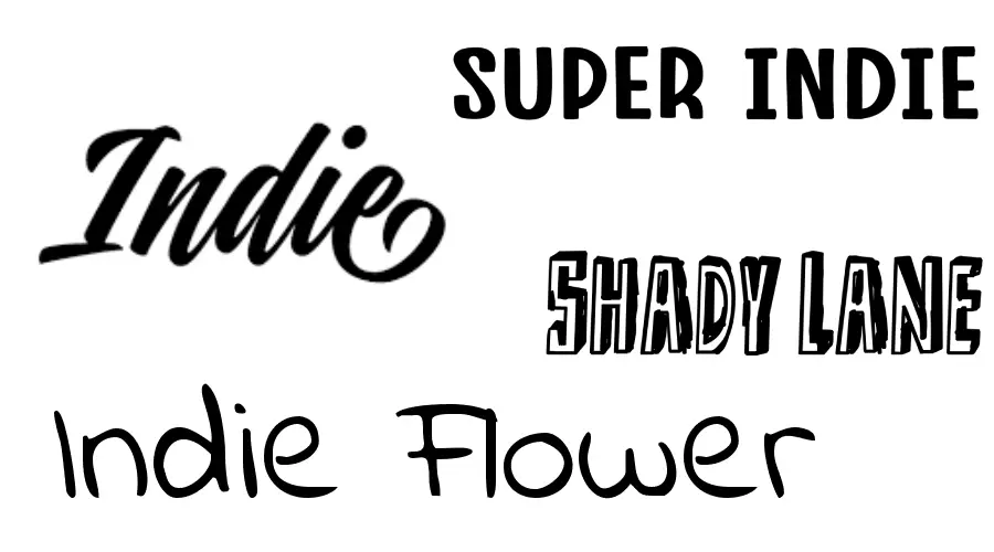 An indie font is any typeface that looks hand-drawn, loose, playful, and slightly imperfect, created by small designers instead of big companies, so it feels personal and offbeat rather than slick and corporate. Some fonts even have “Indie” in their names, such as Indie by Maximiliano Sproviero, a sun-bleached brush script; Indie Flower by Kimberly Geswein, a rounded marker handwriting font on Google Fonts; and Indie by Animography, a rough condensed family built for motion titles.